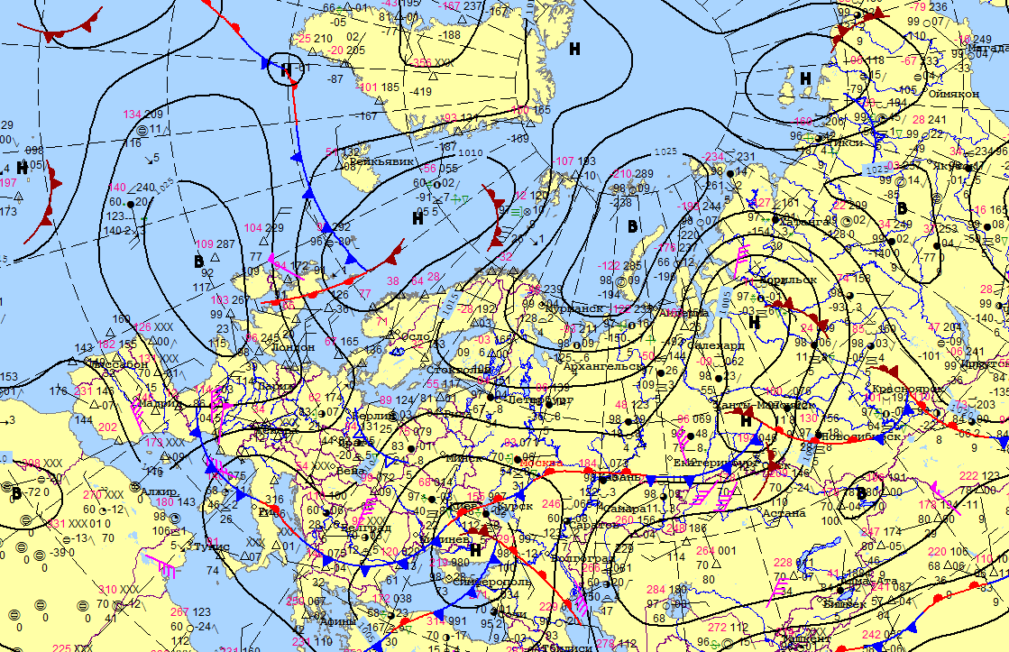 Приземный анализ Гидрометцентра